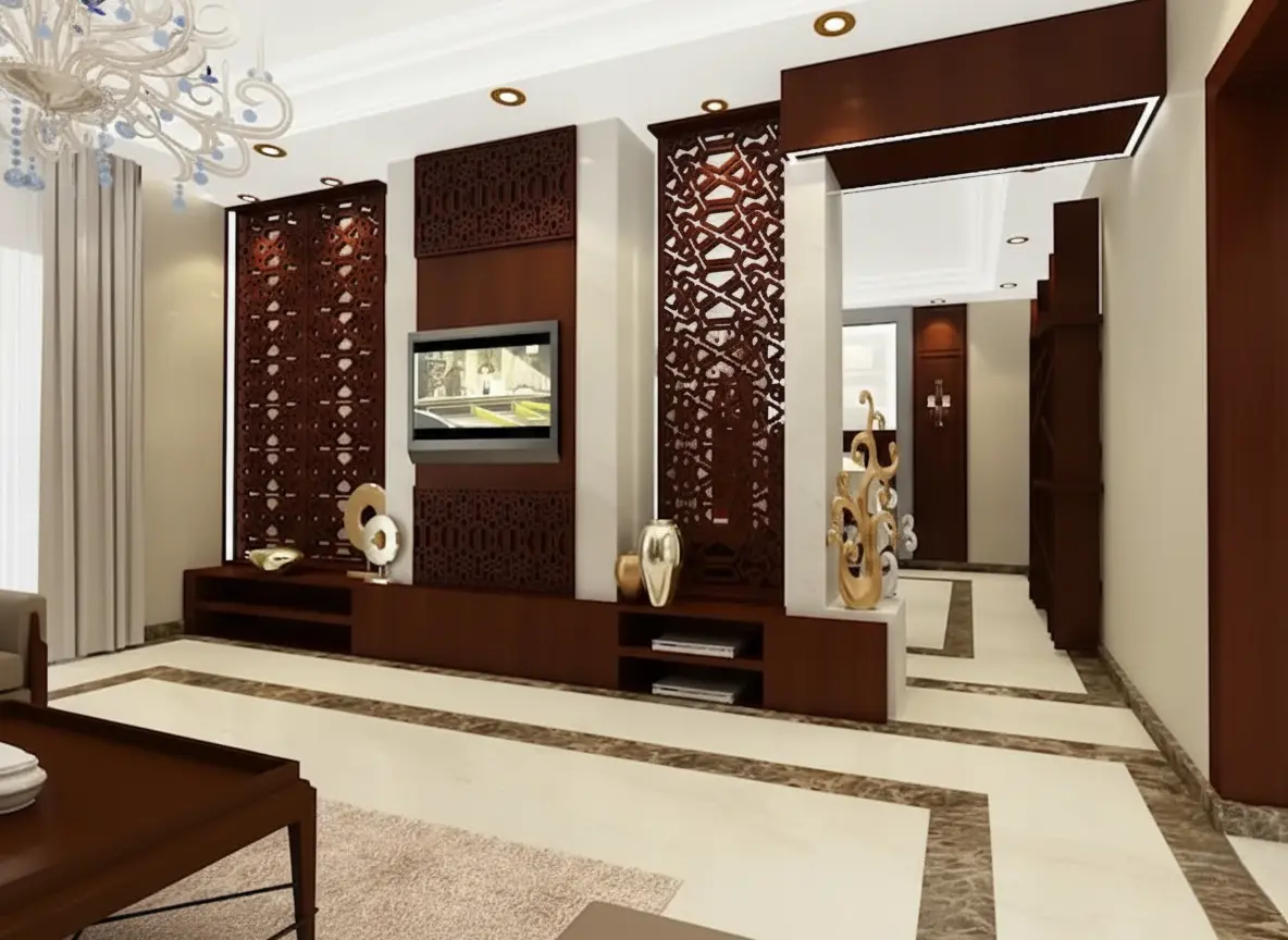 ✔ تناغم تام بين الأبواب والديكورات الجدارية والسقفية